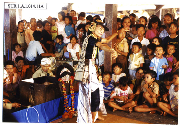 Rasinah menari topeng Tumenggung dalam Pertunjukan Tari Topeng Gunung Jati di Cirebon, Jawa Barat.