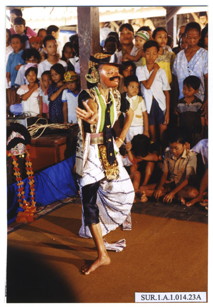 Rasinah menari topeng Tumenggung dalam Pertunjukan Tari Topeng Gunung Jati di Cirebon, Jawa Barat.