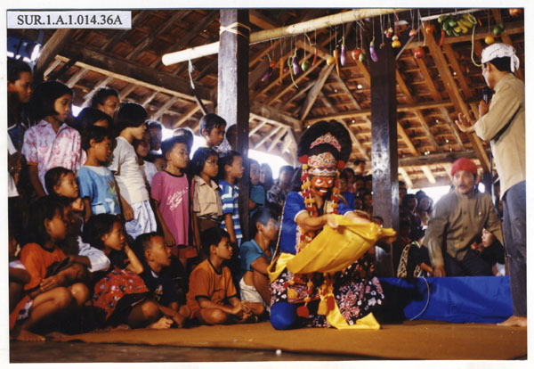 Wangi menari topeng Klana dalam Pertunjukan Tari Topeng Gunung Jati di Cirebon, Jawa Barat.