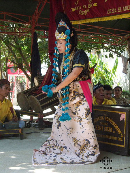 Tari Topeng Panji yang dipertunjukan oleh penari Nunung grup Adingrum dalam acara Hajatan Khitanan di Desa Cangkringan Indramayu tanggal 21 Agustus 2008