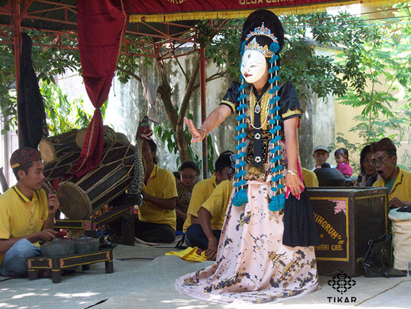 Tari Topeng Panji yang dipertunjukan oleh penari Nunung grup Adingrum dalam acara Hajatan Khitanan di Desa Cangkringan Indramayu tanggal 21 Agustus 2008