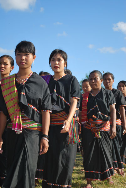 Peserta BCB dengan memakai busana adat berjalan berderet pada Pawai Budaya dalam acara Bulan Citra Budaya di Lombok Tengah - 17 Juli 2009.
