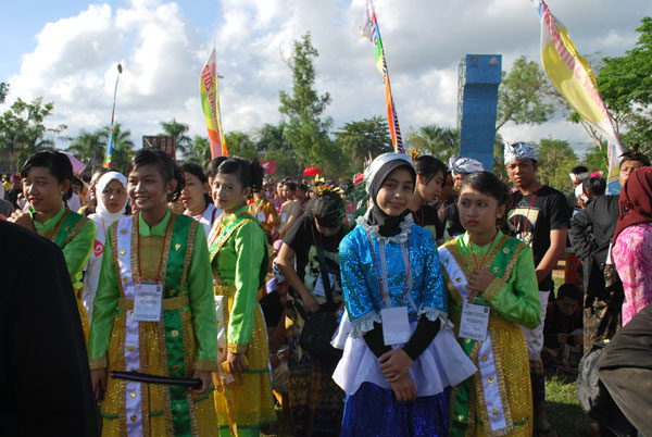 Para peserta menunggu dimulainya Pawai Budaya dalam acara Bulan Citra Budaya di Lombok Tengah - 17 Juli 2009.
