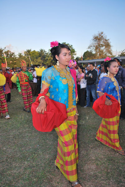 Dua peserta perempuan memakai kebaya membawa buntalan warna merah pada Pawai Budaya BCB NTB 2009 tanggal 17 Juli 2009 di Praya - Lombok Tengah.