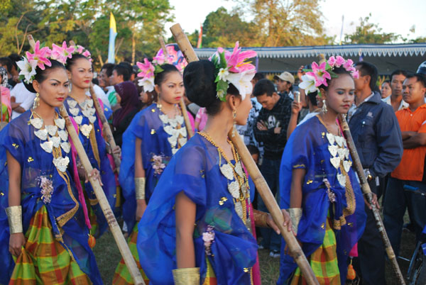 Para peserta perempuan memakai pakaian seragam warna biru pada Pawai Budaya BCB NTB 2009 tanggal 17 Juli 2009 di Praya - Lombok Tengah.