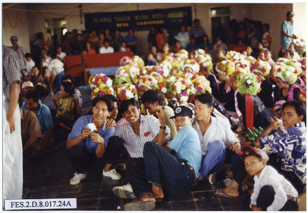 Para pemuda foto bersama Kasinoman Wadon pada Upacara Ngarot di Desa Lelea Kabupaten Indramayu Jawa Barat.