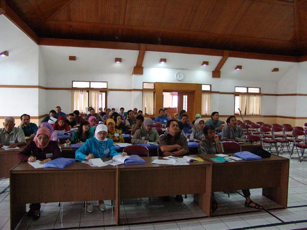 Para peserta menyimak materi pada Pelatihan PSN topik "Alat Musik Dawai" pada Agustus 2005 di Bandung, Jawa Barat.
