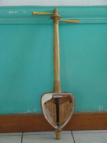 Rebab Sunda, alat musik dawai yang cara memainkannya digesek pada bagian permukaan atas dawai. Alat musik ini adalah produk Pelatihan Guru PSN pada Agustus 2005 di Wisma Bumi Kitri, Bandung, Jawa Barat.