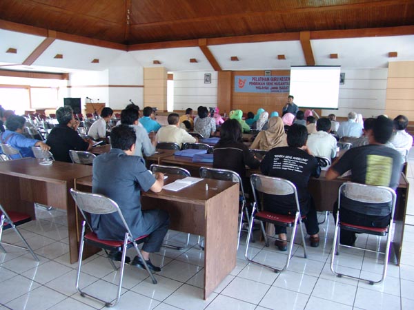 Para peserta menyimak materi dalam Pelatihan Guru PSN topik "Alat Musik Dawai" pada Agustus 2005 di Wisma Bumi Kitri, Bandung, Jawa Barat.