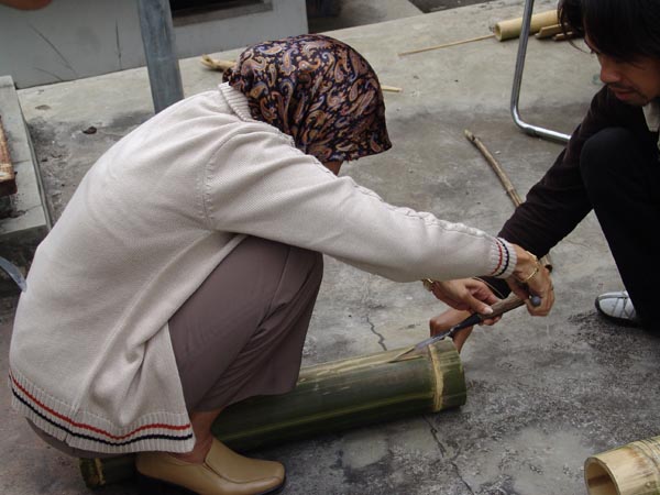 Tak hanya untuk laki-laki, peserta perempuan ini juga aktif menjadi peserta Pelatihan PSN topik "Alat Musik Dawai" pada Agustus 2005 di Bandung. Tampak peserta ini sedang mengupas permukaan bambu untuk dibuat celempung. Celempung adalah alat musik tradisional dari Jawa Barat yang terbuat dari bambu yang sumber bunyinya berasal dari ruas batang bambu yang beresonansi saat dipukul. Alat pemukulnya terbuat dari bahan bambu atau kayu yang ujungnya diberi kain atau benda tipis agar menghasilkan suara nyaring.