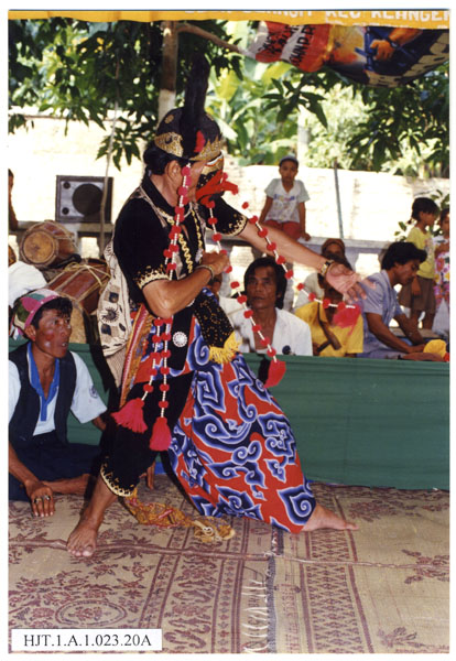 Pak Jana menari Topeng Klana dalam acara Seni Tari Topeng Gaya Klasik Cirebon Panji Asmara Pimpinan Sujana Arja Putra di desa Slangit Kecamatan Klangenan kota Cirebon Jawa Barat.
