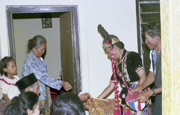 Pak Jana menari Topeng Klana dalam acara Seni Tari Topeng Gaya Klasik Cirebon Panji Asmara Pimpinan Sujana Arja Putra di desa Slangit Kecamatan Klangenan kota Cirebon Jawa Barat.