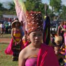 Seorang peserta asal NTB memakai busana adat daerahnya - berupa jong (penutup kepala) - kemben - dan selendang - pada Paw