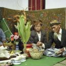 Seorang laki-laki (kanan) sebagai Saehu mempersiapkan sesaji dalam Seni Jentreng yang dilaksanakan oleh grup Pusaka Medal