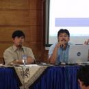 Satya Pandia (kanan) dan Julianus Limbeng (kiri) menyampaikan materi topik "Musik Populer" dalam Pelatihan Guru PSN pada J