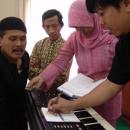 Julianus Limbeng (kanan) menyampaikan materi topik "Musik Populer" kepada para peserta dalam Pelatihan Guru PSN pada Juli