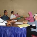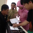 Para peserta berdiskusi kelompok menyusun silabus buku "Musik Populer" dalam Pelatihan Guru PSN pada Juli 2006 di Tasikmal